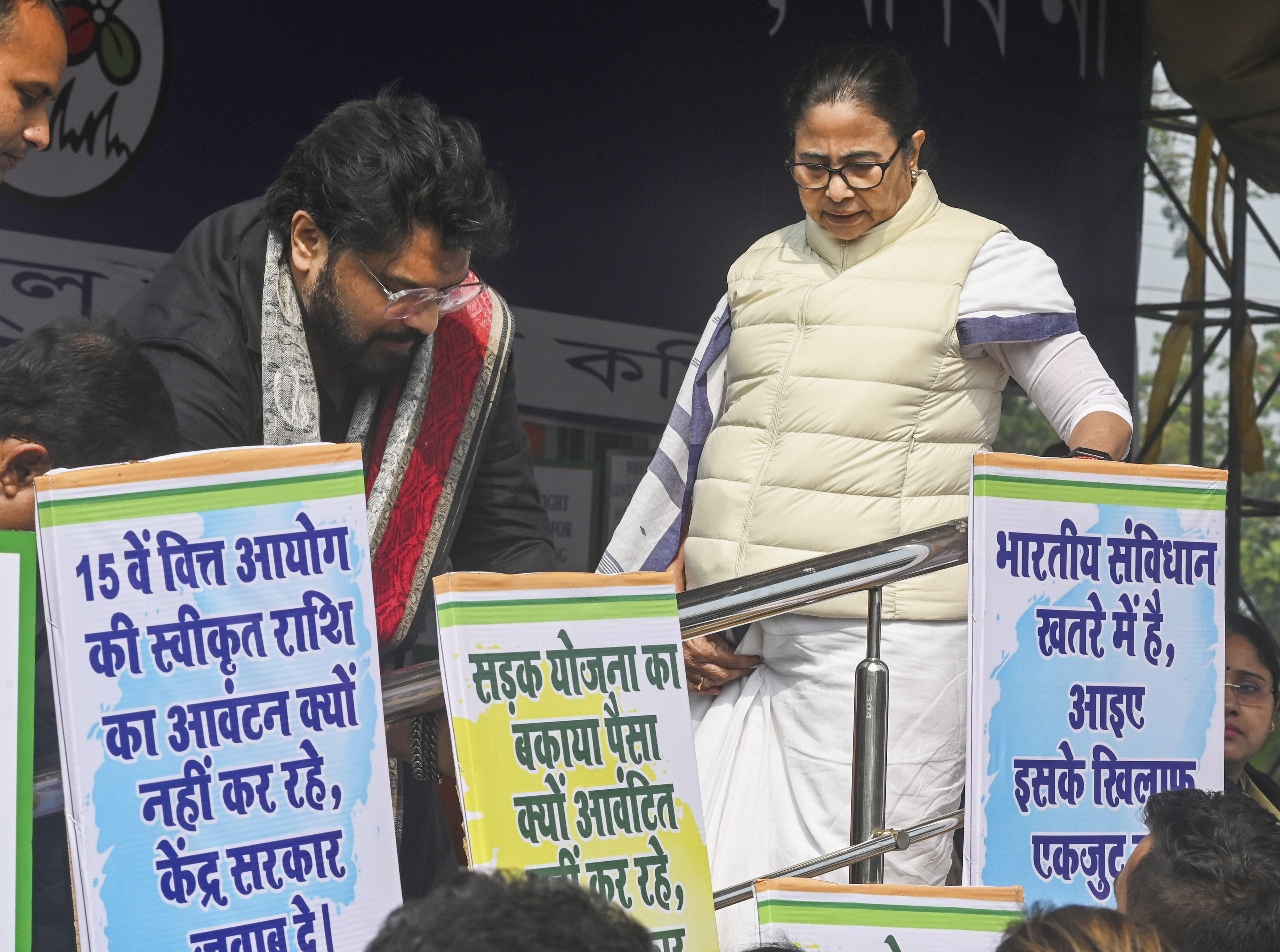 Referring to the Centre, the Trinamul Congress supremo declared at her protest site off Red Road, “Every day I see BJP advertisements filled with lies in the name of public welfare while they withhold our dues. I do not need your charity. On February 21, we will pay 21 lakh workers of the 100-day job scheme their dues through DBT to their bank accounts.”