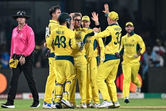 ऑस्ट्रेलिया प्लेइंग इलेवन: डेविड वार्नर, मिशेल मार्श, स्टीवन स्मिथ, मार्नस लाबुशेन, जोश इंग्लिस (विकेटकीपर), ग्लेन मैक्सवेल, मार्कस स्टोइनिस, पैट कमिंस (कप्तान), मिशेल स्टार्क, एडम ज़म्पा, जोश हेज़लवुड