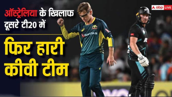 AUS vs NZ Match Report: ऑस्ट्रेलिया ने दूसरे टी20 में न्यूजीलैंड को हरा दिया. कीवी टीम को 72 रनों से करारी हार का सामना करना पड़ा है. इस तरह ऑस्ट्रेलिया ने 3 टी20 मैचों की सीरीज अपने नाम कर लिया है. पहले टी20 मैच में कंगारूओं ने न्यूजीलैंड को 6 विकेट से हराया था. वहीं, इस मैच की बात करें तो न्यूजीलैंड के सामने जीत के लिए 175 रनों का टारगेट था, लेकिन कीवी टीम 17 ओवर में महज 102 रनों पर सिमट गई.