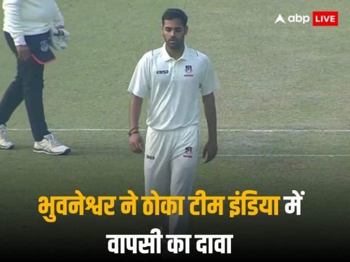Bhuvneshwar Kumar Ranji Trophy 2024: टीम इंडिया के तेज गेंदबाज भुवनेश्वर कुमार इंटरनेशनल क्रिकेट से काफी वक्त से दूर हैं. उन्होंने भारत के लिए आखिरी मैच 2022 में खेला था. लेकिन इसके बाद से टीम इंडिया में वापसी नहीं कर पाए. लेकिन अब भुवनेश्वर ने शानदार बॉलिंग करते हुए वापसी का दावा ठोका है. वे रणजी ट्रॉफी 2023-24 में उत्तर प्रदेश के लिए खेल रहे हैं. भुवनेश्वर ने बंगाल के खिलाफ पारी की शुरुआत में ही तीन विकेट ले लिए. इसके बाद चौथा विकेट कप्तान मनोज तिवारी के रूप में लिया.