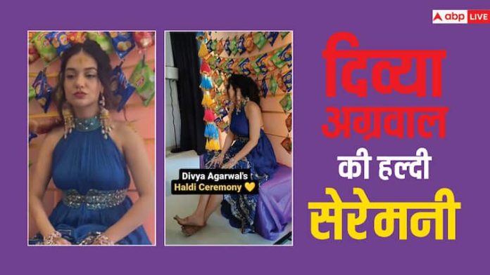दिव्या की हल्दी काफी सादगी से हुई. उन्होंने इस रस्म के लिए ब्लू कलर की ड्रेस कैरी की. हैवी झुमके और हथफूल पहना हुआ था. मीडिल पार्टेड हेयरस्टाइल से उन्होंने इस लुक को कंप्लीट किया. पूरे लुक में दिव्या बेहद खूबसूरत लग रही थीं. हल्दी सेरेमनी की सजावट की बाद करें तो चिप्स के पैकेट से सजावट की गई. सोशल मीडिया पर दिव्या की हल्दी की वीडियोज वायरल हैं.