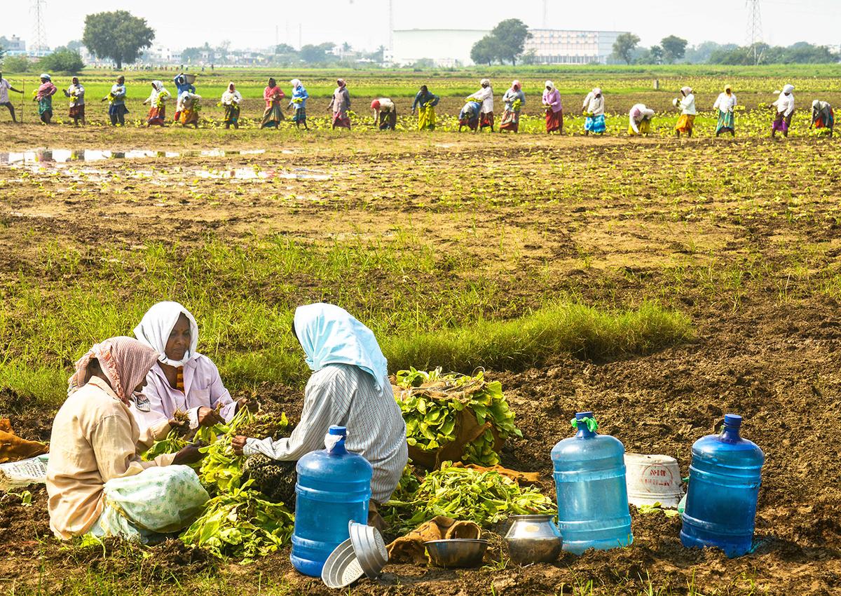 Starting fresh: Workers planting tobacco saplings in fields damaged by the cyclone in Madhiralapadu village.