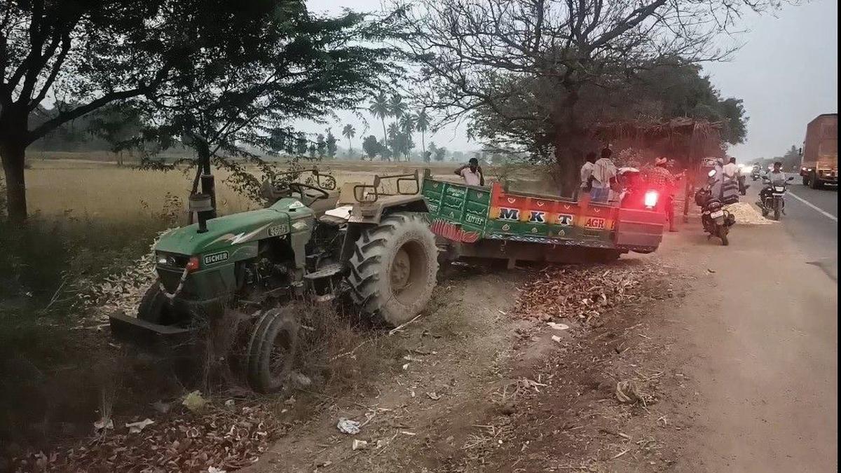 The tractor was driven by M. Poongavanam (42), a local farmer in Ettayapuram village in Tiruvannamalai taluk. He sustained minor injuries whereas G. Krishnan (50), who accompanied him, succumbed to injuries at the Government Medical College Hospital in Tiruvannamalai town, around 10 kms from the accident spot.