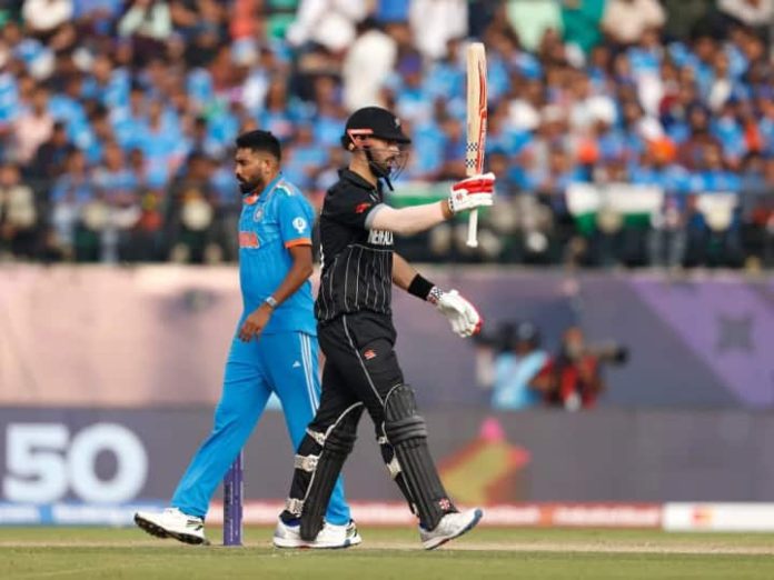 India vs New Zealand Innings highlights: धर्मशाला के मैदान पर टीम इंडिया ने न्यूज़ीलैंड के खिलाफ टॉस जीतकर गेंदबाज़ी का फैसला किया. पहले बल्लेबाज़ी करने उतरी न्यूज़ीलैंड ने 50 ओवर में 273 रनों पर सिमट गई. टीम के लिए नंबर चार पर बैटिंग करते हुए डेरिल मिचेल ने 127 गेंदों में 9 चौके और 5 छक्कों की मदद से सबसे ज़्यादा 130 रन स्कोर किए. इसके साथ रचिन रवींद्र ने 6 चौके और 1 छक्का लगाकर 75 रनों की पारी खेली. भारत के लिए मोहम्मद शमी ने सबसे ज़्यादा 5 विकेट लिए.
