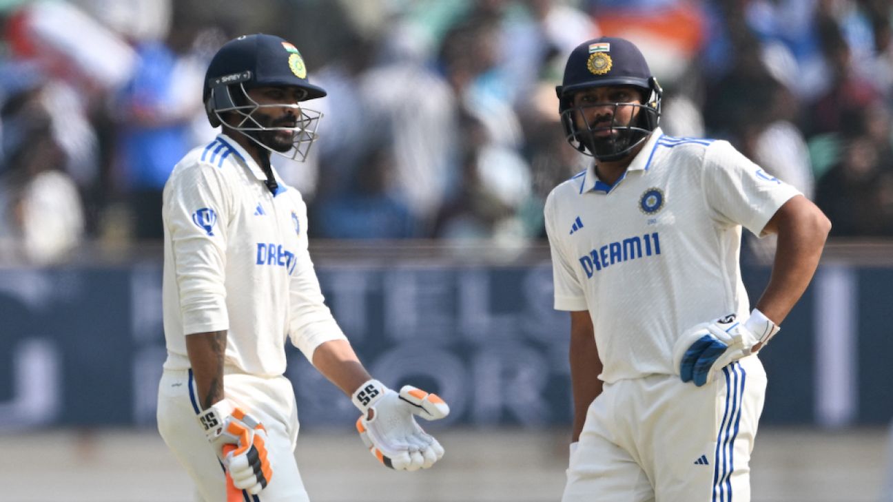 A promotion to Jadeja made double sense: protect the debutant Sarfaraz and also introduce a left-hand batter. Coming back from possibly the first time he has missed a Test with a hamstring injury, and having to deal with a family dispute gone public, Jadeja would have been excused for having a lot on his mind when he joined Rohit, but he batted with the most unencumbered mind: just purely reacting to the next ball in an old-school fashion.