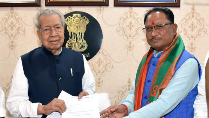 Chhattisgarh Chief Minister-designate Vishnu Deo Sai meets the Governor Biswabhusan Harichandan to stake claim in forming the government, at Raj Bhavan on December 10, 2023.